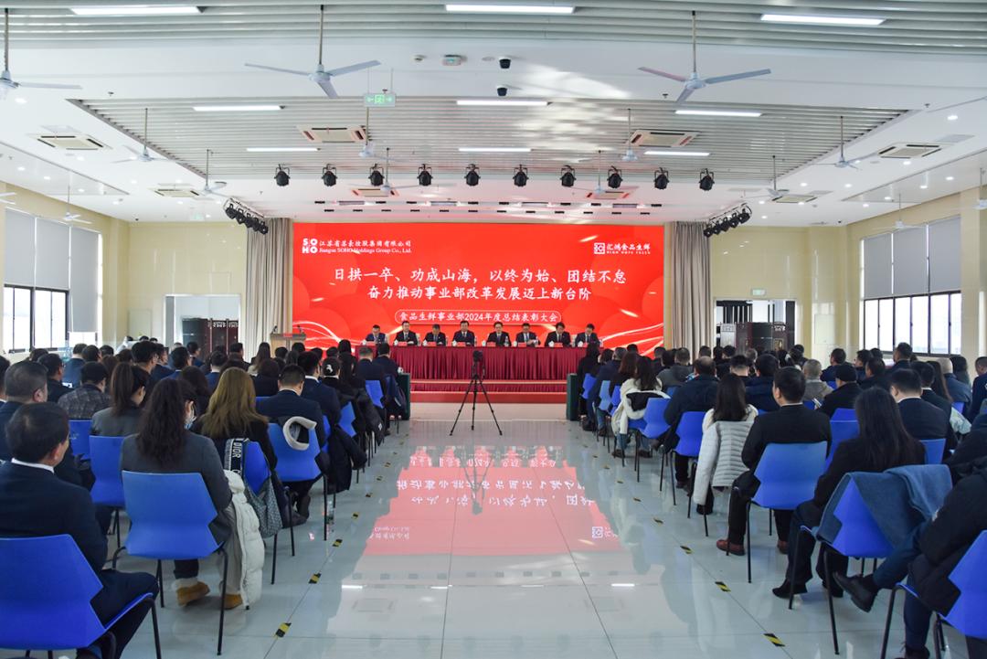 1月20日上午,匯鴻食品生鮮事業部在鎮江召開2024年度總結表彰大會。深入學習蘇豪控股集團2025年工作會議精神,回顧總結2024年工